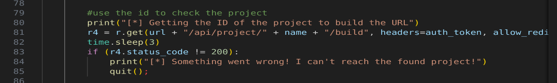 at the bottom of the page I can see the gerapy version, 0.9.7! woot! that means the exploit will work!, lets continue reading the exploit to see what else I can find out…. in lines 80 and 81 I can see that I need to have a project ID - right now that website doesn’t have any projects so the code will most likely fail if I run it.