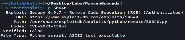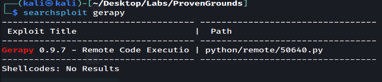 Using searchsploit I search for “gerapy”, this search returned a vulnerability on Gerapy 0.9.7 that leads to a remote code execution. I don’t know what version of gerapy I am looking at, at least, not yet.