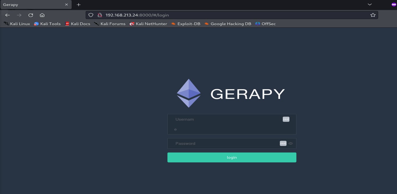 it looks like I will have to guess the username/password but first things first, I “inspect” the page for any comments or anything that can point me to an username or password, this lead me nowhere…. but I do have the words “gerapy”